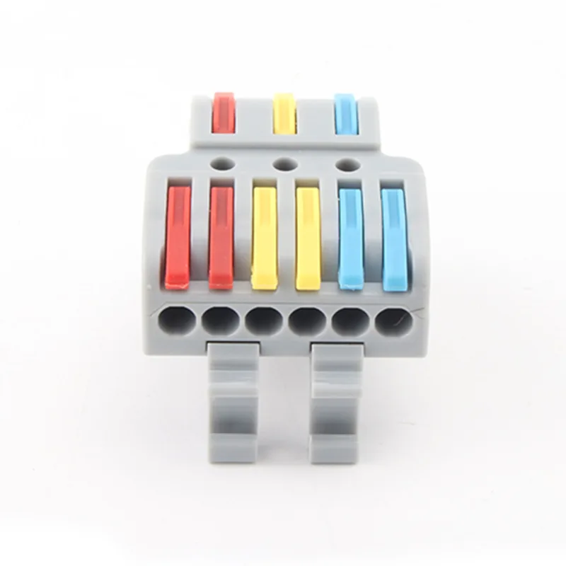 CHTAR 4mm2マルチイン マルチアウト DIN レール タイプ スプライシング ワイヤ クイック コネクタは UL94 V0 グレードの PC ハウジング材料で作られ、導電性は錫メッキの T2 銅で作られ、スプリングは S301 で作られています。 0.5~2.5mmで接続可能です2ソフトワイヤーと0.5-4mm2リジッドワイヤなので、作業に合わせて選べる幅広いワイヤサイズを提供します。 2 つのワイヤ入力と 4 つのワイヤ出力で、2 つの別々の配線接続として適切に接続できます。お客様の選択に応じて、さまざまな色やハウジング、レバーを作成できます。スプライスワイヤクイックコネクタは、ワイヤを簡単に取り外して再接続することができます。