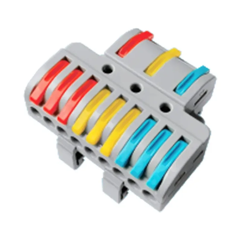 4mm2マルチイン マルチアウト DIN レール タイプ スプライシング ワイヤ クイック コネクタは、産業分野および照明システムのワイヤ接続に広く使用されています。クイック ワイヤ コネクタは効率的な製品で、メンテナンス用の DIN レール アセンブリ シェルは電気パネル内で適切に機能し、フリー ジャンクションは電気技師が現場での設置時間を大幅に節約できるように設計されています。